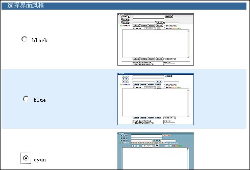 点击左边导游栏的【界面设置】,即可进入“选择界面风格”页面。选择界面的操作非常简单,在该页面您可以看到所有界面的整体风格,如下图所示,您只要通过点击单选钮选择您喜欢的界面,然后点击页面最下方的【确定】即可。