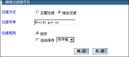 - 选择【过滤规则】,您可以拒收信件也可以与文件夹结合使用,将信件自动保存在指定信箱。